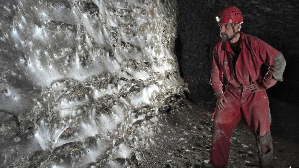Das außergewöhnliche Gebilde erstreckt sich über eine Fläche von ungefähr 106 Quadratmetern und verläuft entlang der Wände eines niedrigen, schmalen Höhlengangs. Forschungsteams haben es als ein komplexes Geflecht aus Tausenden trichterförmigen Einzelnetzen beschrieben.
